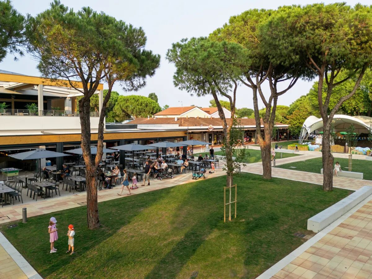 Der Campingplatz Pra' delle Torri verfügt über eine eigene Einkaufsstraße mit einem Supermarkt, Souvenirläden, einer Eisdiele, einer Bar/Snackbar und sechs Restaurants. Die meisten Einrichtungen können nicht nur in der Hochsaison, sondern auch in der Nebensaison genutzt werden. Im Jahr 2025 können Sie außerdem ein Pizzarestaurant, eine Snackbar und einen gemütlichen Garten genießen. In der Rotisserie auf dem Campingplatz können Sie auch Fertiggerichte mitnehmen, ohne den Campingplatz zu verlassen. Wie praktisch!