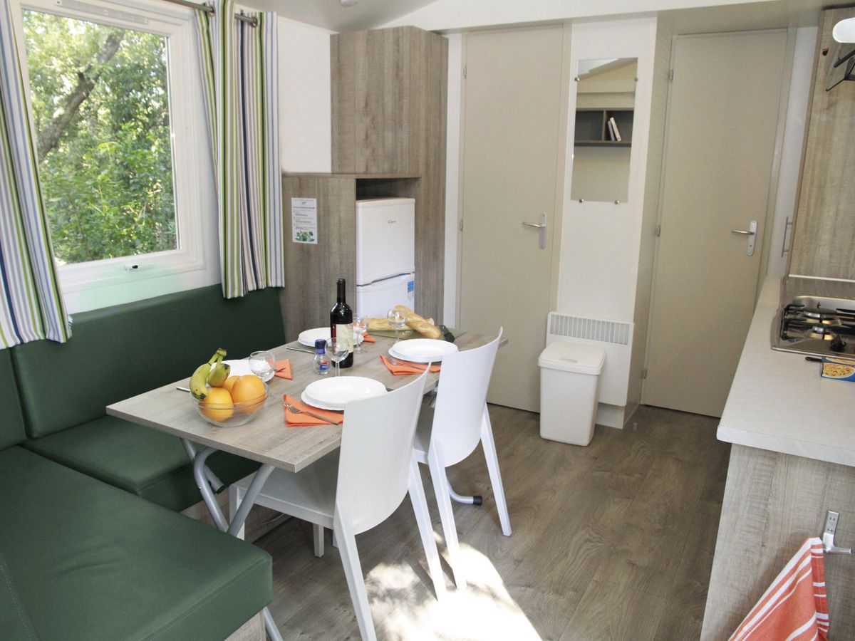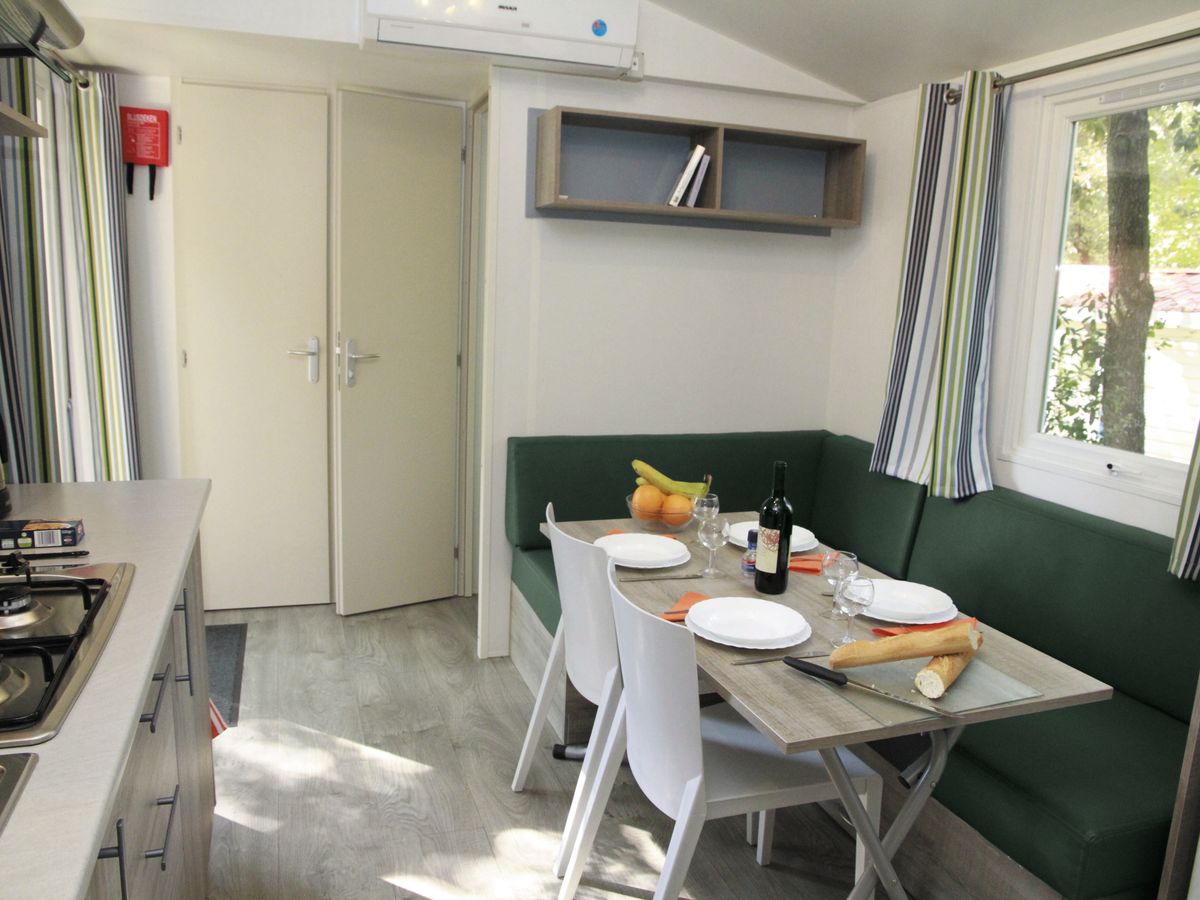 Klimaanlage SteinterrasseAuf einigen Campingplätzen finden Sie das Mobilheim Comfort mit Steinterrasse. Das praktische und hervorragend ausgestattete Mobilheim (24 m², 3,00 x 8,00 m) verfügt über ein abgeschrägtes Ziegeldach, gemütliche Abteile, kostenlose Klimaanlage und eine Steinterrasse vor dem Mobilheim!