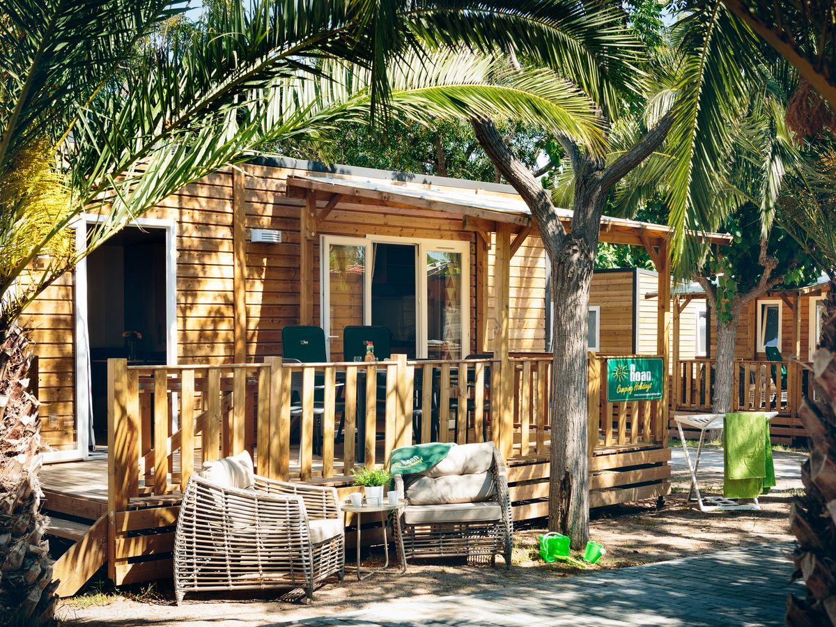 Auf Campingplatz Sanguli finden Sie das neue Mobilheim “Catalunya”. Dieses große und sehr gut ausgestattete Mobilheim (32 m², 4 x 8,5 m) hat ein Ziegeldach, gratis Klimaanlage und eine Holzterrasse!