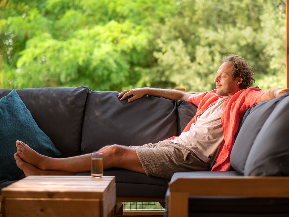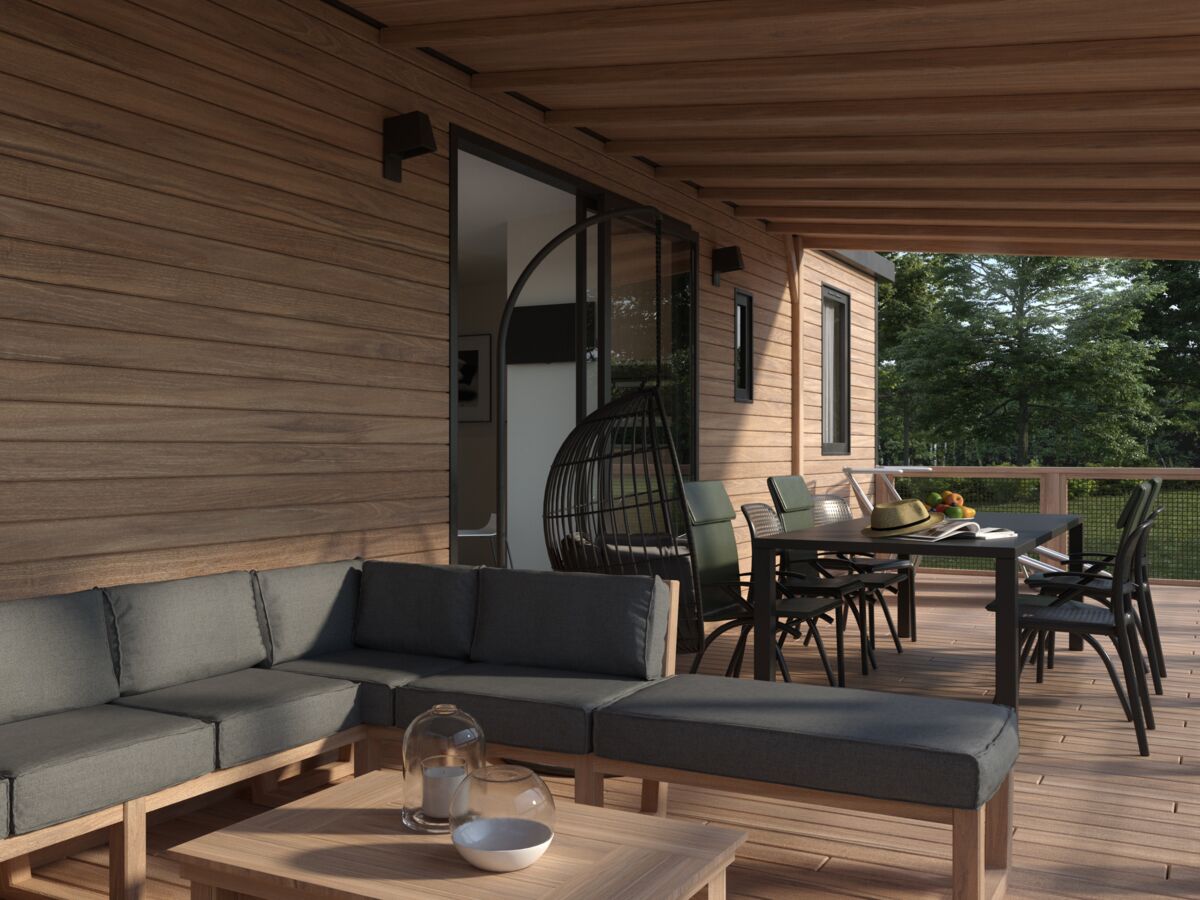 Die große Holzterrasse ist komplett überdacht und hat einen geräumigen Essbereich sowie ein großes, U-förmiges Loungesofa. Angrenzend an die Terrasse erwartet Sie noch ein separates Sonnendeck mit 2 bequemen Liegestühlen und einem gemütlichen Hängesessel. Die 2 Liegestühle können Sie auch an den Pool oder Strand mitnehmen. Und am Ende Ihres Urlaubs nehmen wir Ihnen die Arbeit ab, denn die Endreinigung ist selbstverständlich inklusive. Auf der Seite des Campingplatzes können Sie nachlesen, welche kostenlose Grillplatte Ihre Unterkunft hat.